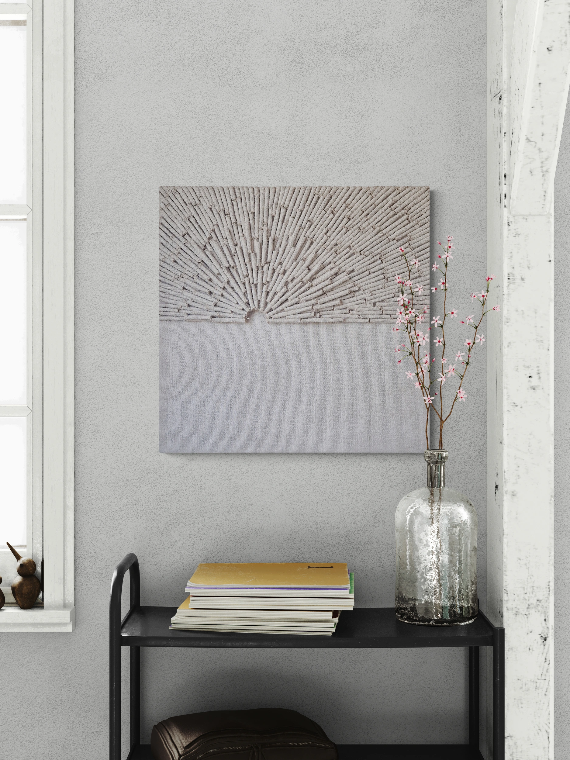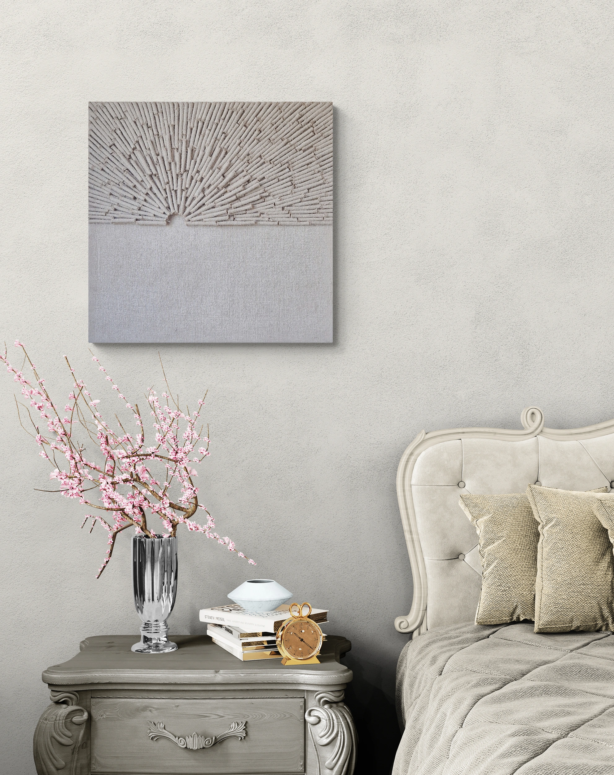 Przestrzenna forma i unikatowa tekstura obrazu zachęcają do interakcji, gdy światło i cień dynamicznie zmieniają się na podniesionych elementach, tworząc wrażenie, że dzieło żyje i ewoluuje wraz z porą dnia.