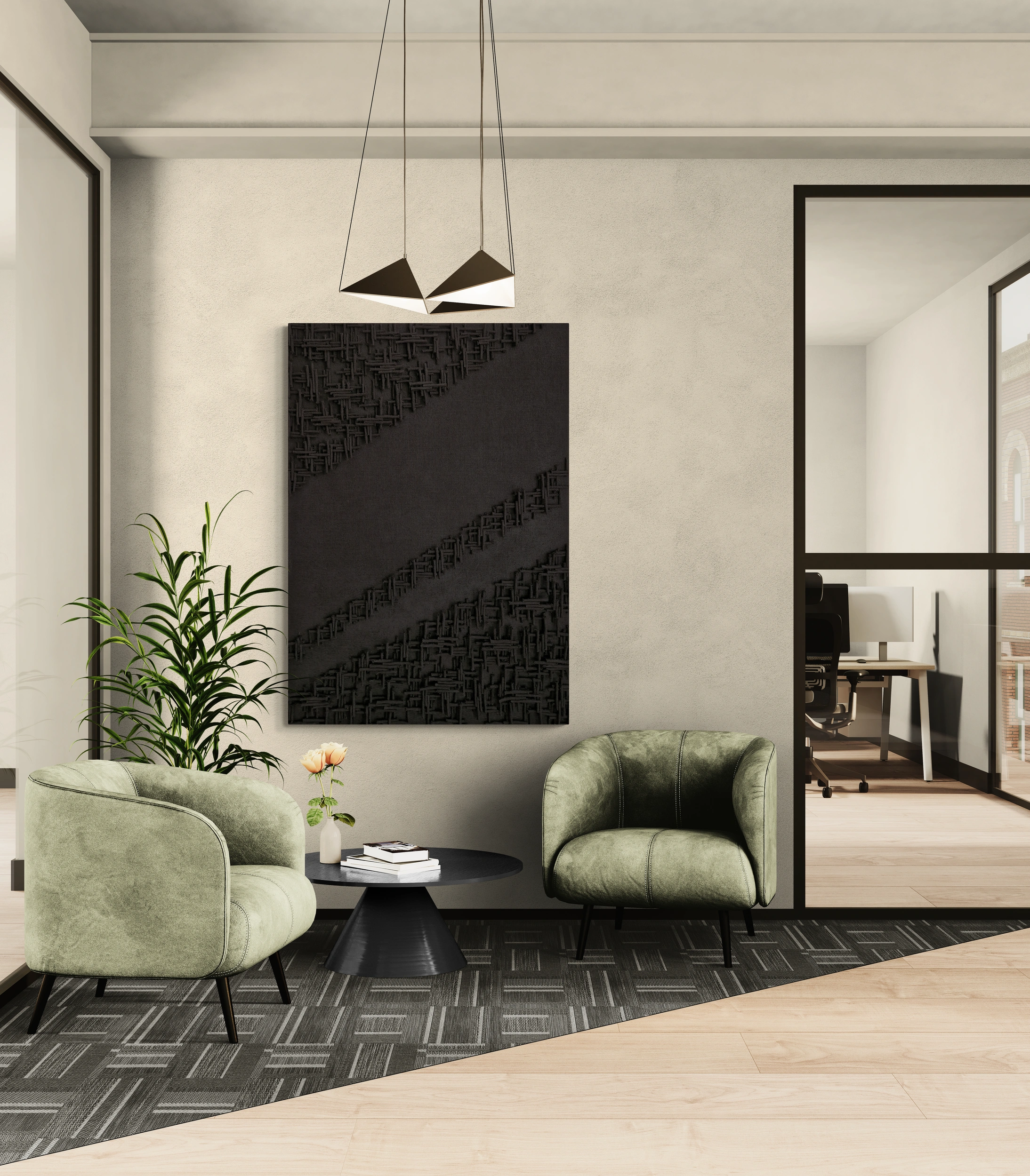 - Modern Classic – czarne, geometryczne formy w połączeniu z elegancką strukturą juty wprowadzą nowoczesny akcent do klasycznych wnętrz, harmonijnie łącząc tradycję z nowoczesnością.