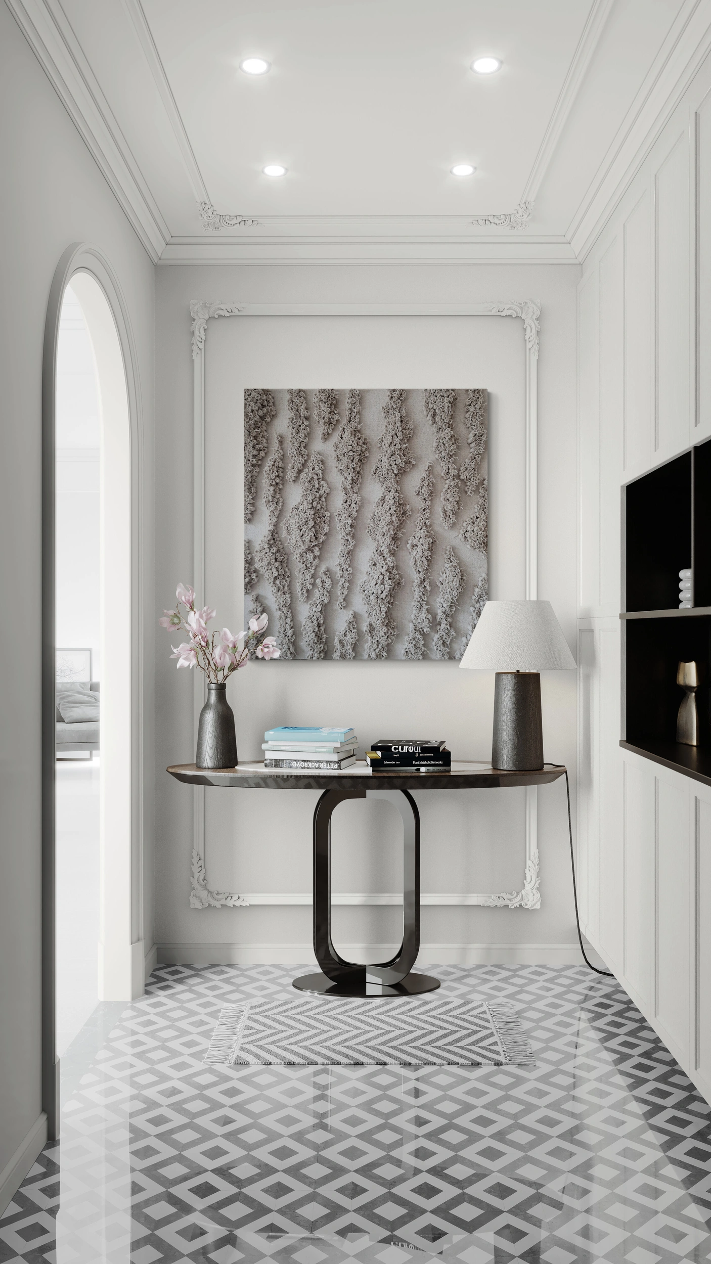 - modern classic - jako delikatny kontrapunkt dla gładkich, jasnych powierzchni,